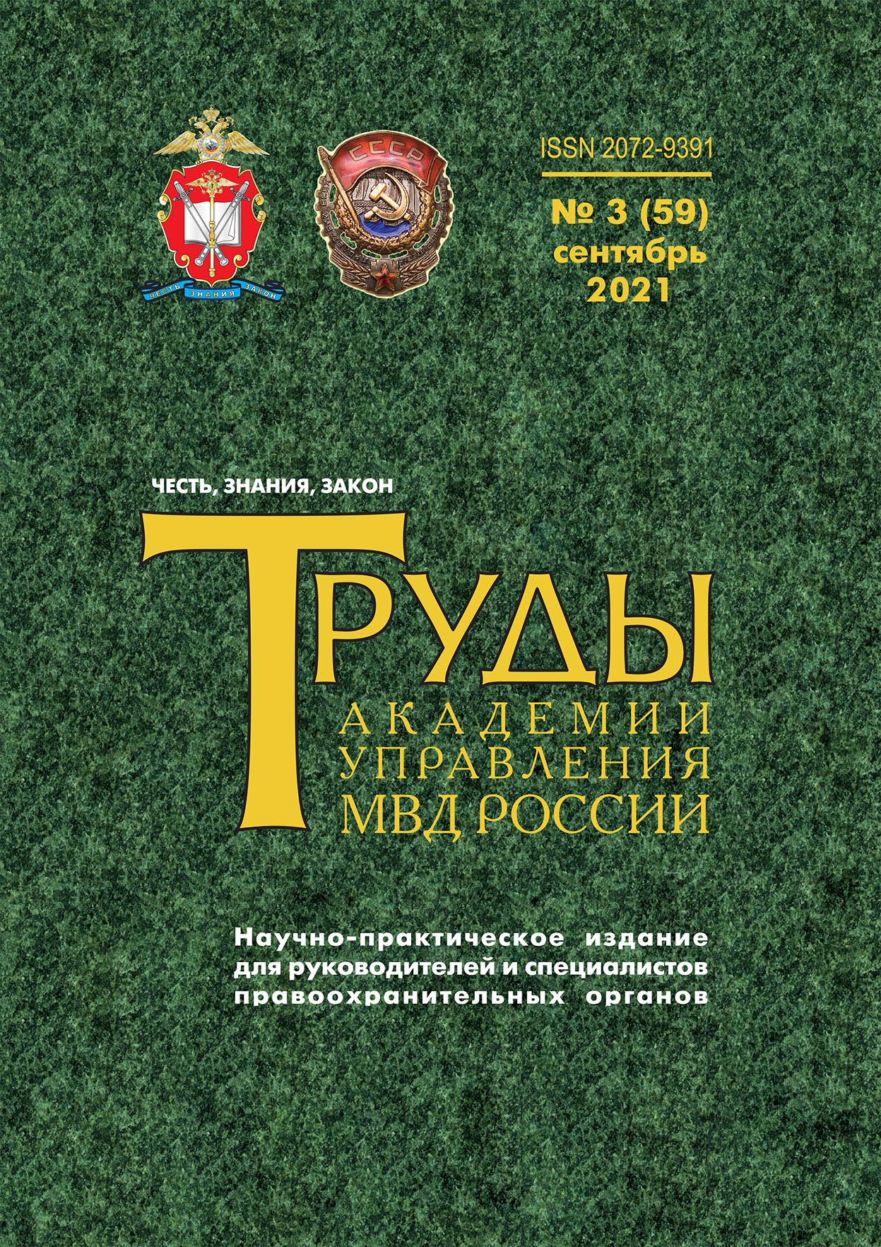 Index of /jirbis2/_docs_file/Эл. библ. для учебы/БИБЛИОТЕКА ПОЛИЦЕЙСКОГО/РАЗНОЕ/Академия управления/АУ_2021/п. 56 Труды Академии № 3 (59) 2021